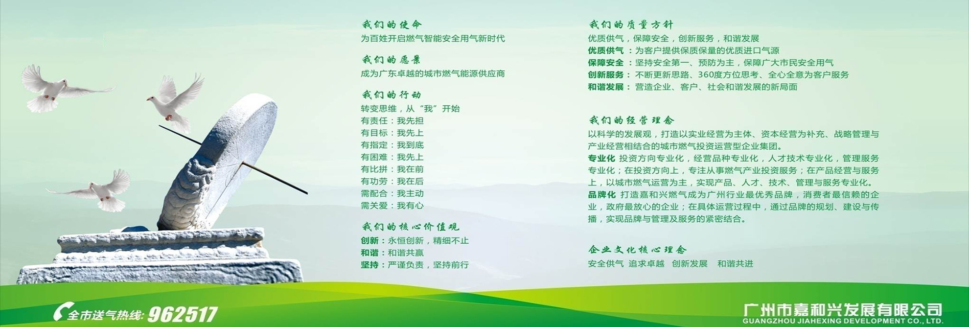 廣州市嘉和興發(fā)展有限公司于2001年3月1日注冊成立,主要從事瓶裝液化石油氣(LPG)批發(fā)貿(mào)易,民用、工業(yè)用液化石油氣,工業(yè)用氣體,汽車加氣站及危險品物流運輸?shù)龋偛吭O(shè)在廣州。目前公司經(jīng)營三個液化氣充裝站、一個汽車加氣站:白云區(qū)神山達嶺液化石油氣站、白云區(qū)加禾氣站和佛山市南海區(qū)冠順氣站,黃埔區(qū)塘口汽車加氣站,總庫容接近800立方米。